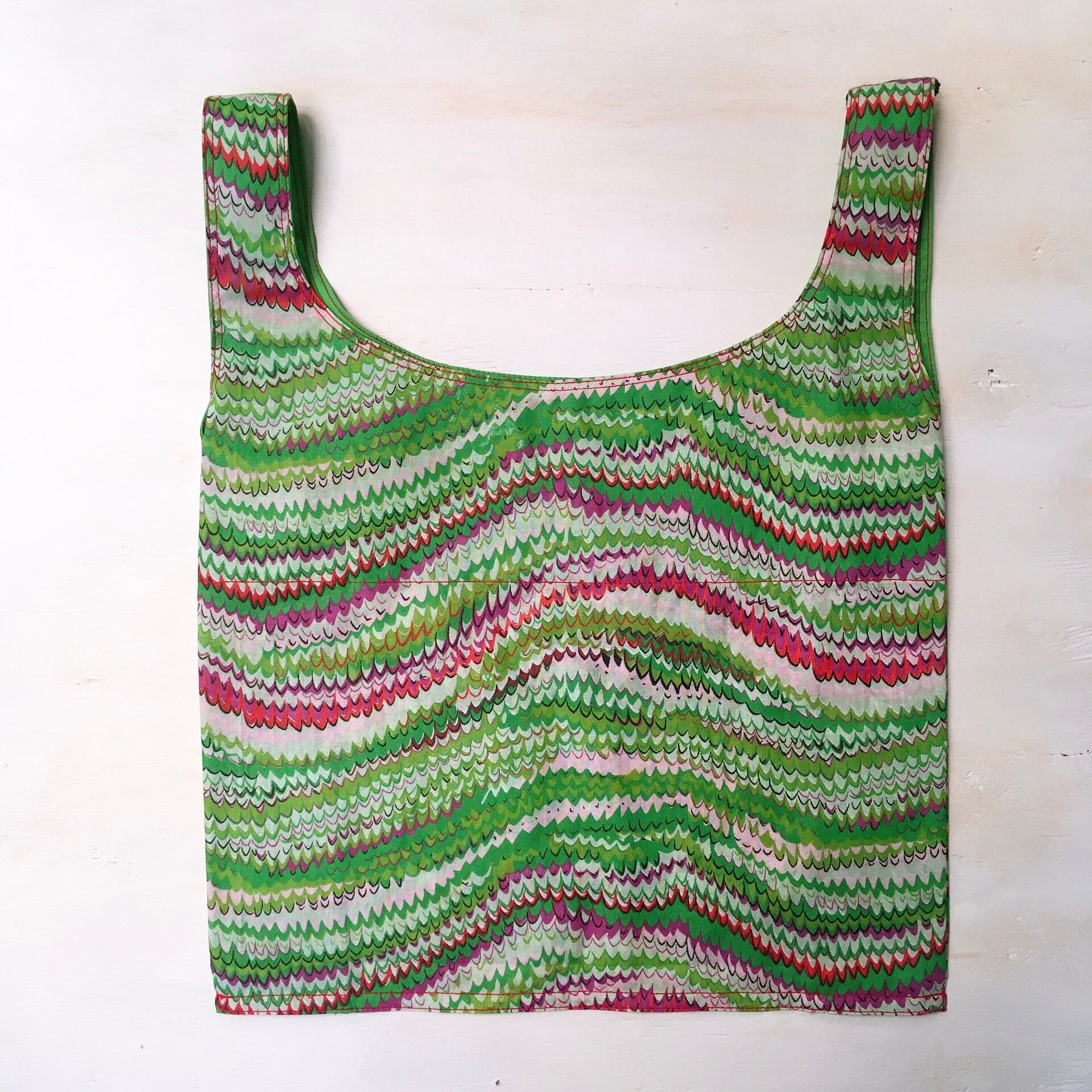 スリランカの生地屋さんで直接買って来た生地で作っているので、なかなか手に入らない手さげです。